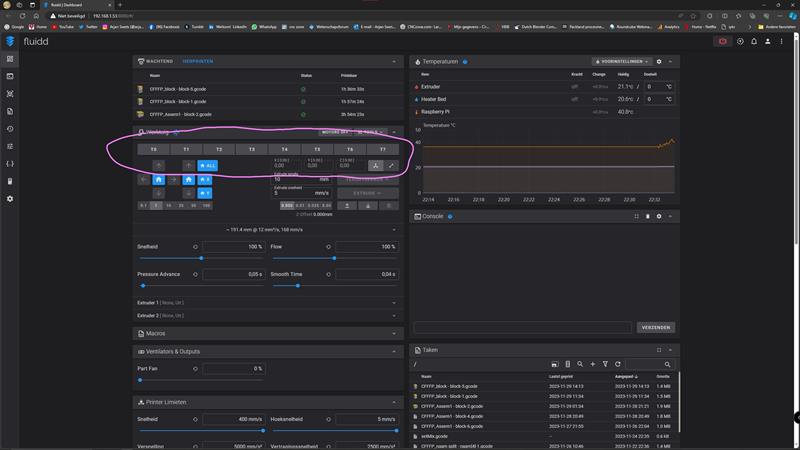 Ook wilde ik graag dat het , wat je in het onderstaande Youtube filmpje zie, weer ging werken. Vandaar dat je in het bovenstaande screenshot ook zie dat er 8 Tools / Extruders zijn.