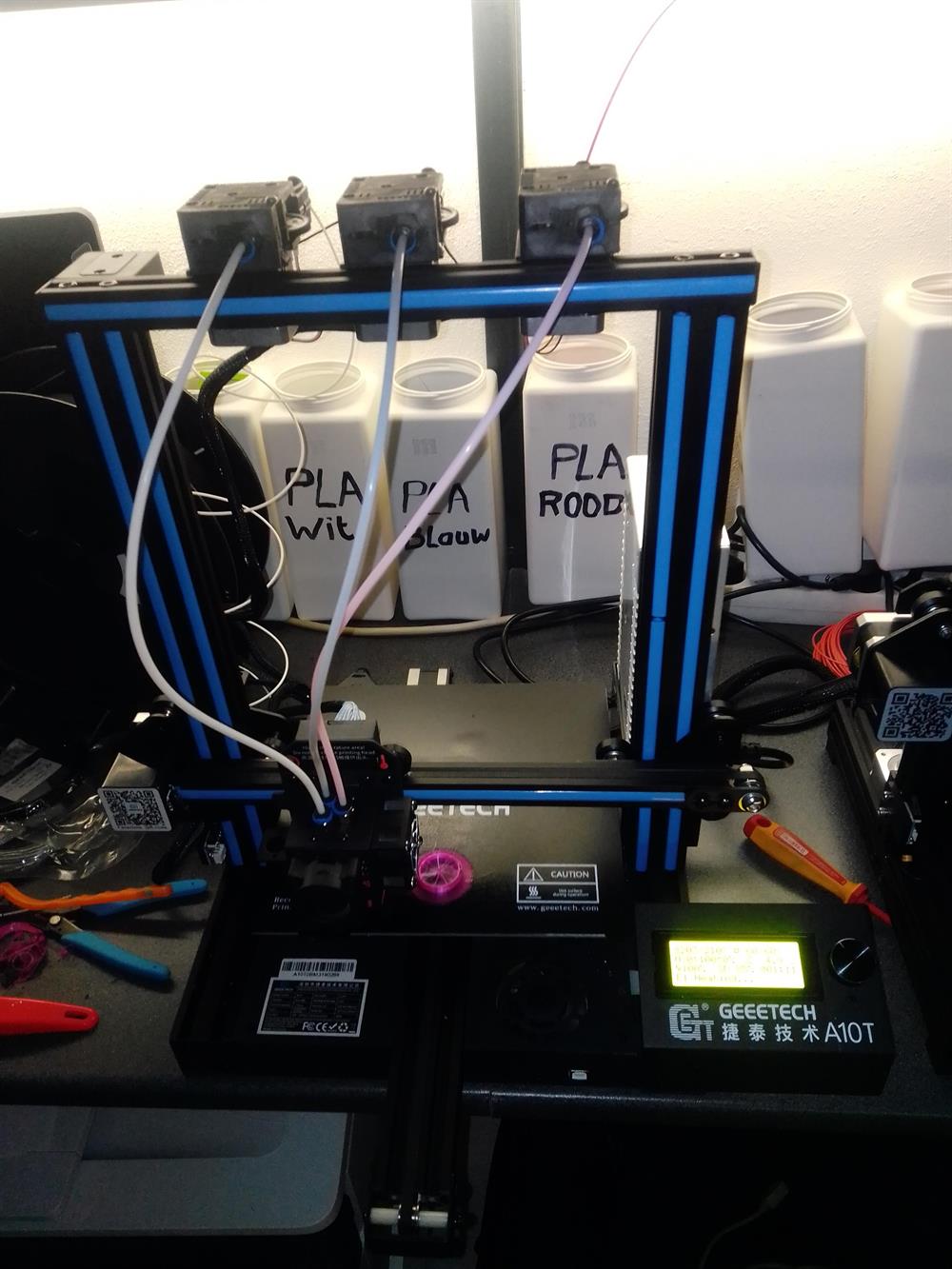 De printer heeft maar 3 extruders, maar je kan nu dus ook opgeven extruder 1 geeft 50% en Extruder 2 geeft 50%.