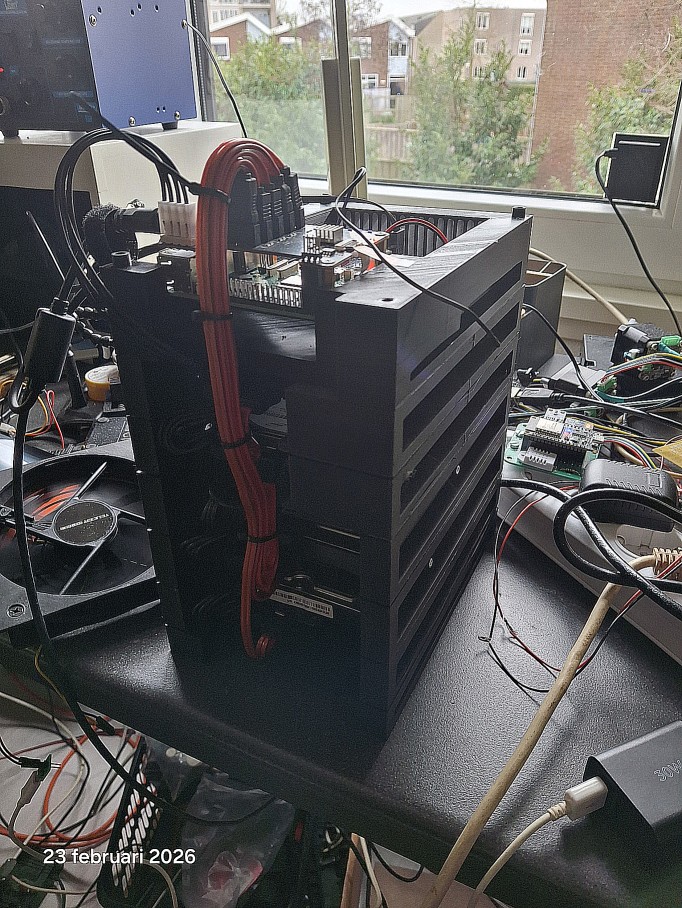 Ik had nog een hele stapel harde schijven liggen. Dus ik heb de bovenstaande uitbreiding gekocht, en daar dus 3 x 2TB en 2 x 500GB harde schijven op aangesloten.