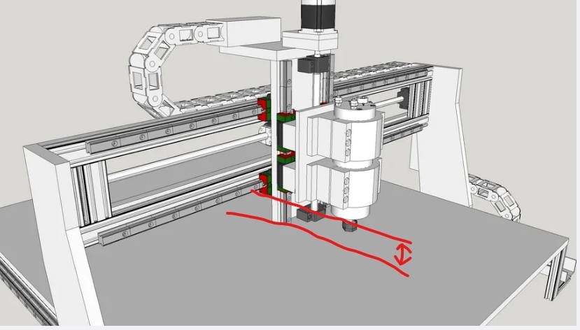 Dus je heb de rijdende brug op deze hoogte gemaakt, waarschijnlijk omdat je zulke hoge objecten van plan ben te gaan frezen.