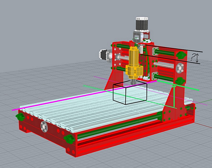 Met de paarse en groene lijnen heb ik even snel het maximale hoogte van het werkstuk uit gegeven. Het zwarte blok.